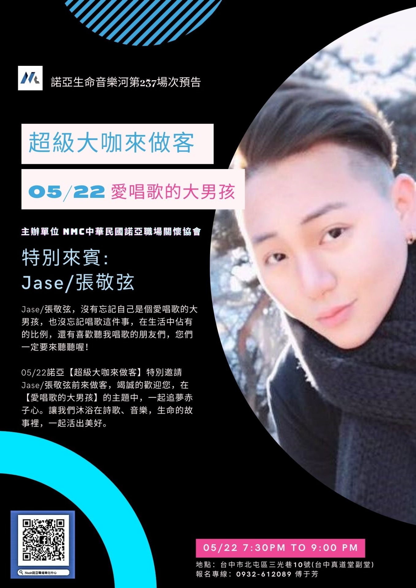 Jase/張敬弦,沒有忘記自己是個愛唱歌的大男孩,也沒忘記唱歌這件事,在生活中佔有的比例,還有喜歡聽我唱歌的朋友們,您們一定要來聽聽喔!